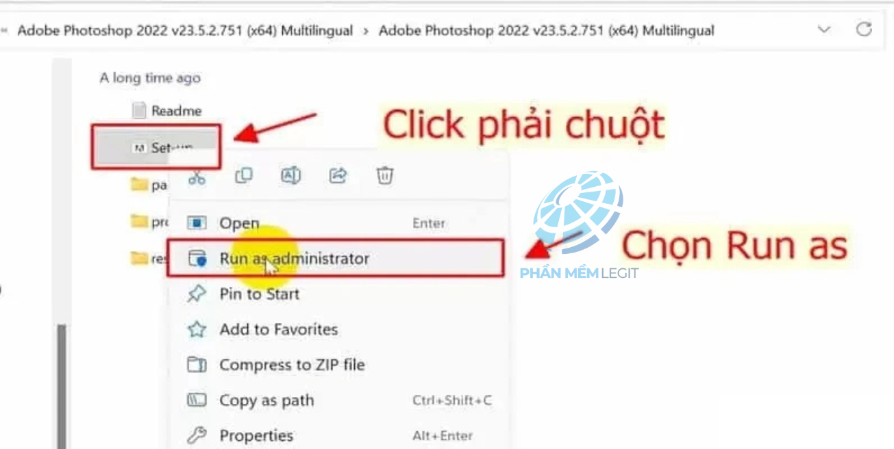 Bước 1: Truy cập trang chủ của Phần Mềm Legit và tải file Photoshop 2022 về máy. File này thường được lưu trên Google Drive, vì vậy hãy đảm bảo kết nối Internet ổn định. Sử dụng phần mềm WinRAR hoặc 7-Zip để giải nén file tải về.